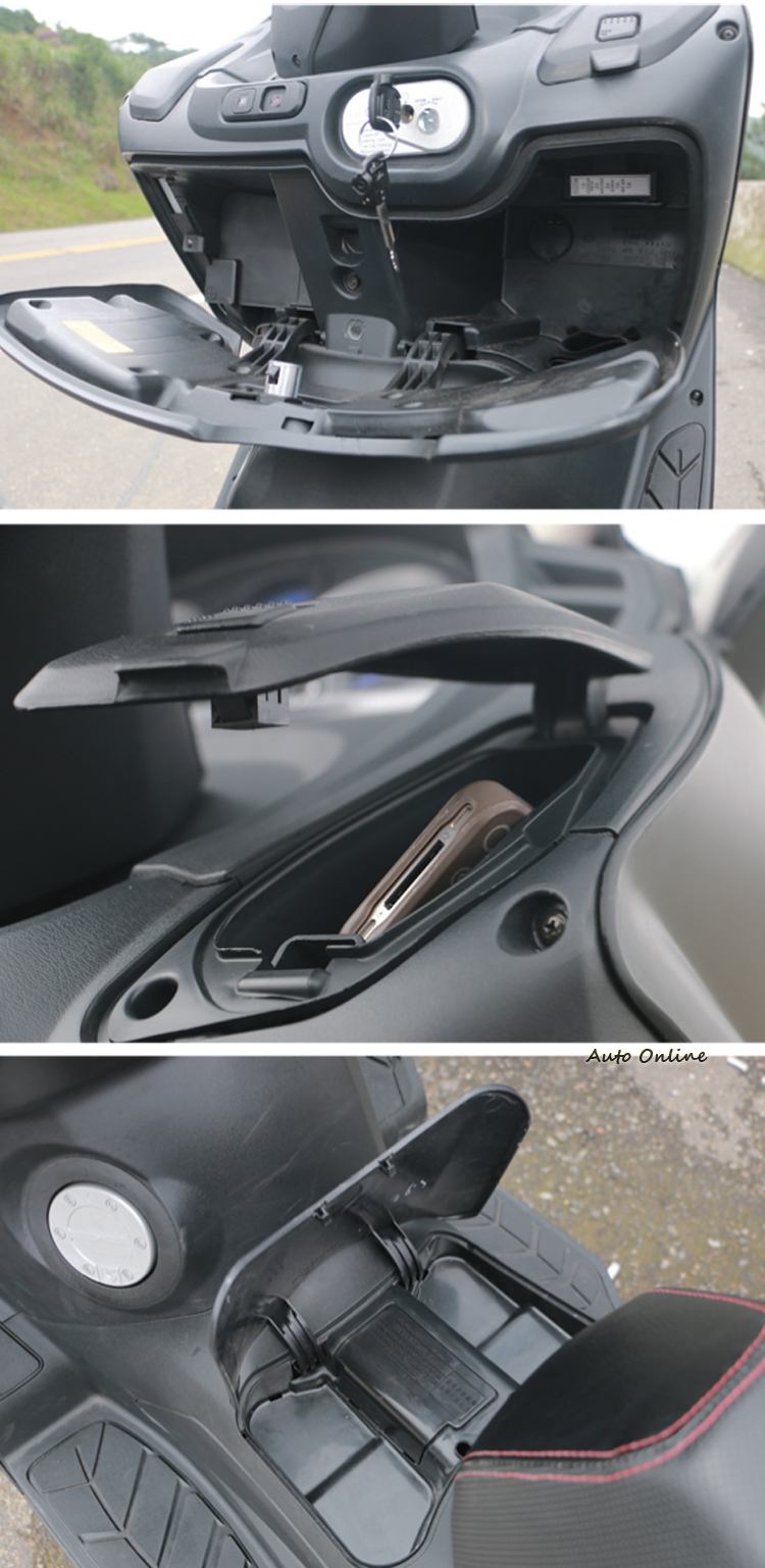 入門價 配備不入門![]() ▲雖然已RV為名,但在山路上的動態反應還算不錯。15萬多的重機歸類於入門車款沒有多大的問題,但過去的經驗告訴我們「入門」這檔事稍有不慎這車就從「入門」變成了「陽春」。仔細環繞車身一圈發現這RV 270雖入門但絕不陽春,在許多細節處也都有妥適的修飾,值得給個讚。 ![]() ▲經過實測如Lubro Race Tech 2的3/4安全帽要放進去當然沒問題,但全罩安全帽就得稍稍喬一下角度才行。![]() ▲坐墊下方的置物空間廣達45公升,相當充裕。![]() ▲車上設有相當多小型的置物空間,其中還附有USB插座可進行手機的充電,相當實用方便。![]() ▲打開電門後椅墊按下這顆按鈕即可升起,不過視覺上感覺有些突兀。