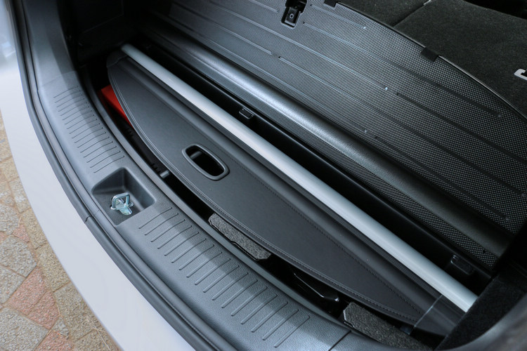 掀起尾門後發現,由於避震塔主要位於第三排座椅兩旁,所以沒有行李廂的空間沒有被壓迫太多,而且遮物捲簾在七座模式下,還能收進地板下置物格內固定,要不是下方的備胎佔去不少空間,實際可用的應該不只於此。