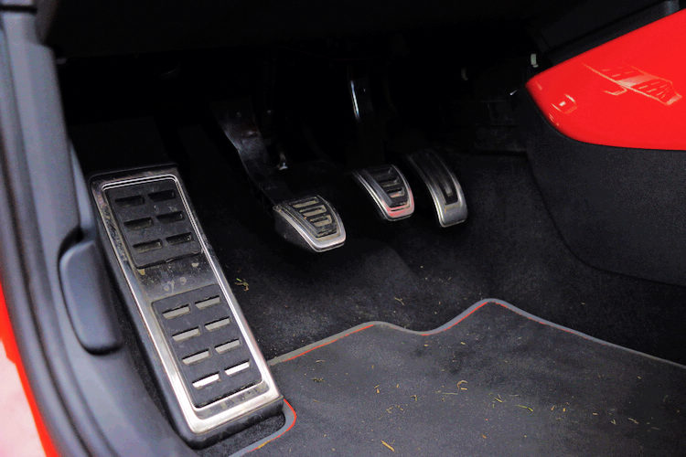 離合器踏板回彈力道會比一般歐系小車稍重,不過我們發現就算塞車開起來也很輕鬆,而且各踏板高度和釋放點恰到好處,有經驗的駕駛應該不用適應就能立即上手。球形排檔頭沒有特別止滑包覆,不過皮質部位提供了足夠的手感,只是排檔行程比預料更長,激駕中偶爾會抓空;同時,齒輪接合的鏗鏘聲有點明顯,不過這可能有人反而喜歡。至於檔位有些模糊是非戰之罪,畢竟這是媒體試乘車,按照以往經驗,這方面算不得準。另外,雖然車內配備了中央扶手,不過開車時記得將它向後翻,否則會妨礙打檔動作。