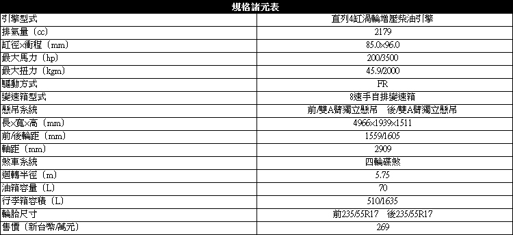 ▲旅行車XF比起轎車,最大馬力多出10ps最大馬力達到200ps/3500rpm。