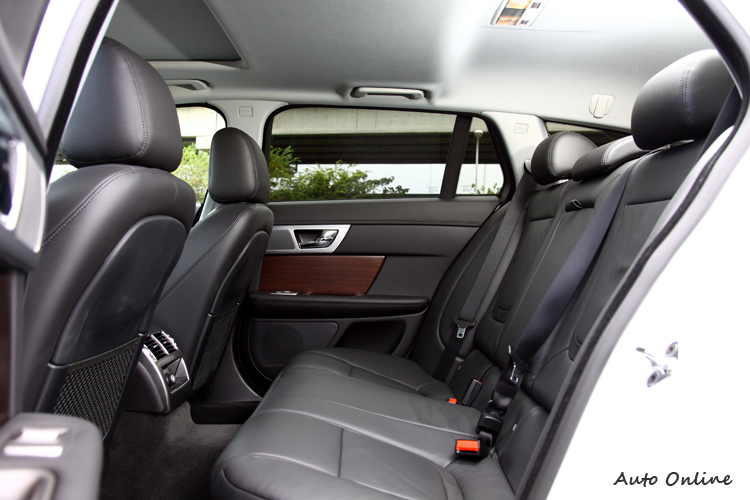 JAGUAR XF Sportbrake B柱之後是最大特色,軸距接近三米,得到後座寬敞空間,平滑的跑旅線條讓後座多出了48mm的頭部空間,絲毫感受不到壓迫感。