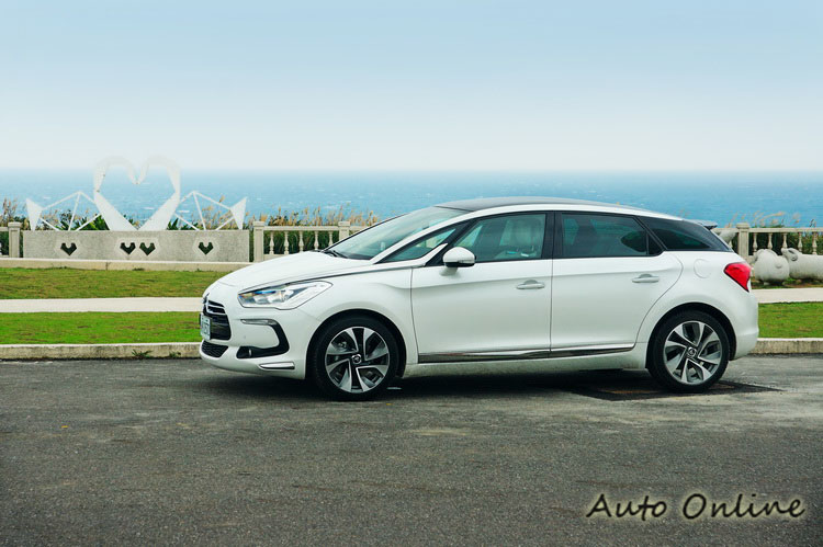 不過跟上面說的這幾部「小SUV車」相比,DS5就比較偏向旅行車的感覺,而在外觀造型上更是拿出豪華品牌的架勢,優雅的曲線勾勒讓全車看起來在美感上就先行勝出。DS5的概念雛形「 C-SportLounge」概念車本身就相當具有未來感,演化為市售車的DS5之後仍然是極具風采。由於要確保家庭車的印象,車頭沒有那麼「犀利」,而是採取比較圓潤的線條,例如引擎蓋與水箱罩、下氣壩的部分。