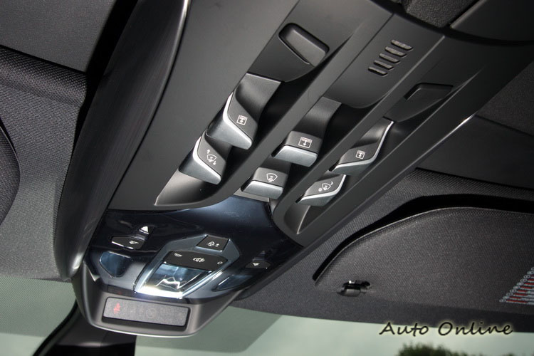 ▲排檔座與車頂控台的鍵鈕設計仿效飛機駕駛艙內的設計