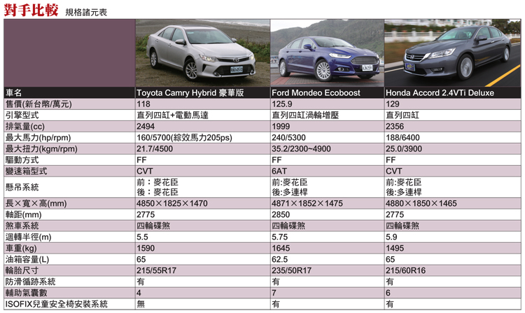 這次售價很仁慈的訂在122萬元(單一規格)更覺得他是一輛CP值高的好車,會有這種想法是剛好這個月也參加了Toyota Camry的發表會,以122萬元價格可買到Camry Hybrid尊爵型,撇開車內配備與動力不談,安全配備T牌只有四顆氣囊,Legacy卻有七顆以及四輪驅動系統,但別忘了Legacy可是進口車。在看其他等級對手,Honda Accord售價129萬元,Ford Mondeo為125.9萬元,當然每輛車都有它的特長所在,Legacy擁有對手沒有的四輪驅動系統、水平對臥引擎、高強度安全車體結構、多一顆氣囊等,售價確是三者中最優惠,如果你是注重安全性的消費者,Legacy確實是一輛CP值高的豪華中大型房車。