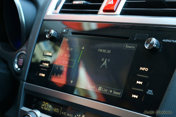 影音系統採七吋觸控螢幕搭配按鍵,使用者能快速找到所要切換的功能,七吋螢幕可顯示車輛、影音、倒車顯影等各種資訊。