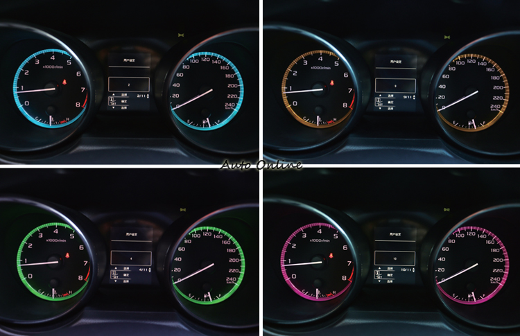 ▲雙圓儀表板透過按鈕切換能顯示出11種顏色變化。