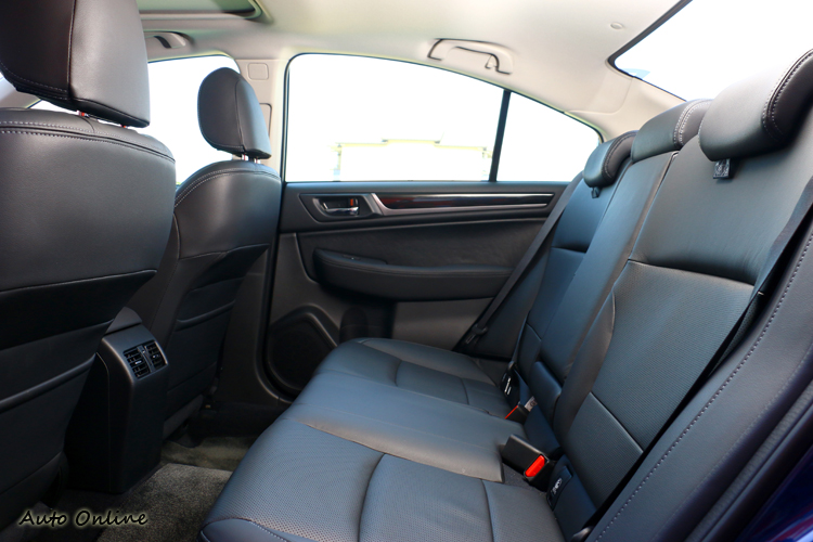 變大後的Legacy車室空間,前座沒有太大差異,最讓人驚訝的是後座空間,軸距不變、車高降低、車長拉長,後座居然變得寬敞,身高170cm左右的成人,能像頭等艙一樣翹腳乘坐,頭部也沒因為降低車高帶來壓迫感,比較可惜因為四門車型無法像五門車型調整椅背,但這對乘坐品質影響不大。除乘坐空間外,要方便乘客上下車,開門角度多增加15mm,15mm的改變更能輕鬆進出車室。