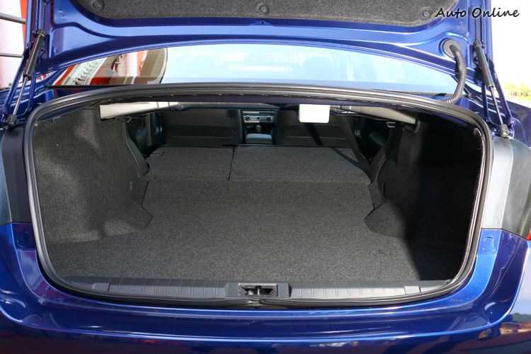 除了車室空間,後行李廂容積525L是同級車之冠,後座椅背有6/4分離傾倒,瞬間得到雙倍成長,行李廂開孔在這次改款中加大,物品放置不因此受限。
