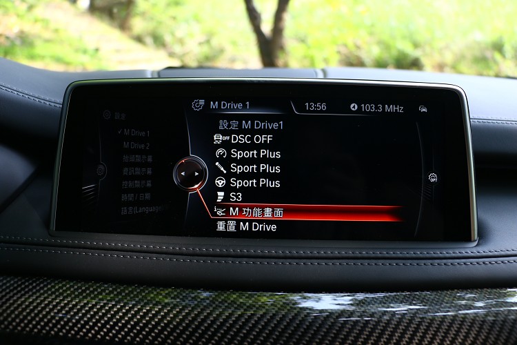 在X5 M的駕駛模式中,轉向、懸吊、動力、變速箱是被獨立出來調整,不像一般BMW車系是直接整合再一起,也就是各個機構都能配合駕駛風格做改變,如果駕駛覺得分別調整太麻煩,方向盤上也有兩組M Drive快捷鍵可設定,按下按鈕就能快速得到自己喜愛的駕駛模式。