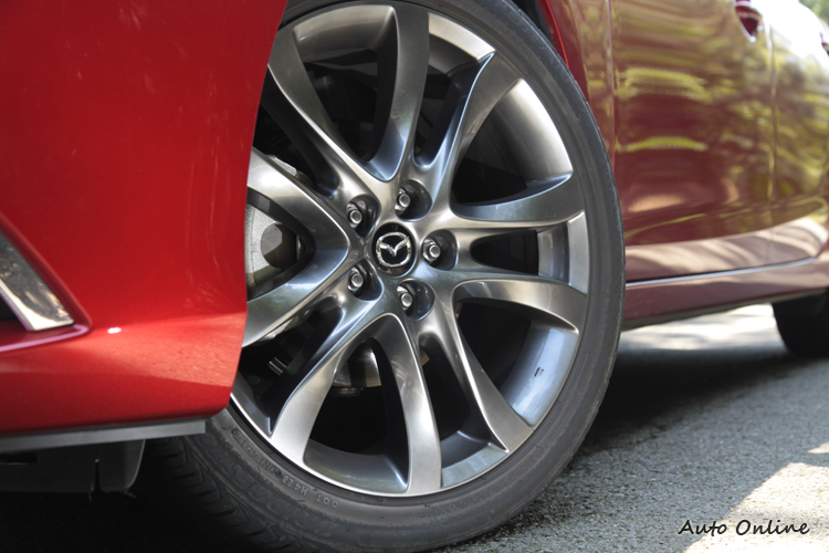 ![]() ▲透過強化懸吊系統的作法,原廠期待為它的舒適性加分。看過我們對於新一代Mazda3試駕心得的讀者,應該都還記得我們對它的懸吊運作改善程度讚不絕口,只因前後兩代有戲劇性的改進。我們預期這次Mazda6並非大改款,無法重新打造全新底盤,不太可能會有多大的變化,不過業者事先透露在許多看不到的地方,仍進行了幅度不小的升級動作,其中重點就集中在懸吊構造的強化。為了證實這點,我們在山路上花了不少時間來體驗,必須坦白說,論底盤的調性還是Mazda3比較討人喜歡! ![]() ▲原廠為柴款頂級款配上19吋胎,不過抓地表現可不怎麼優啊。