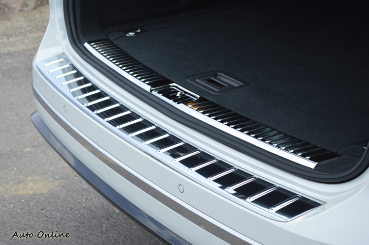 ▲行李廂外的兩道鍍鉻護板兼有美觀和防刮功能。