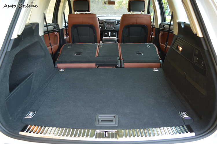 Touareg在改款前的座椅機能就已經獲得好評,標準狀態下就有580公升的容量,配合後座椅背傾倒功能,最大還能擴充至1642公升的水準。而這組後座椅還在行李廂右側設置了快速釋放控制開關,使得調整載物空間的過程更輕鬆。