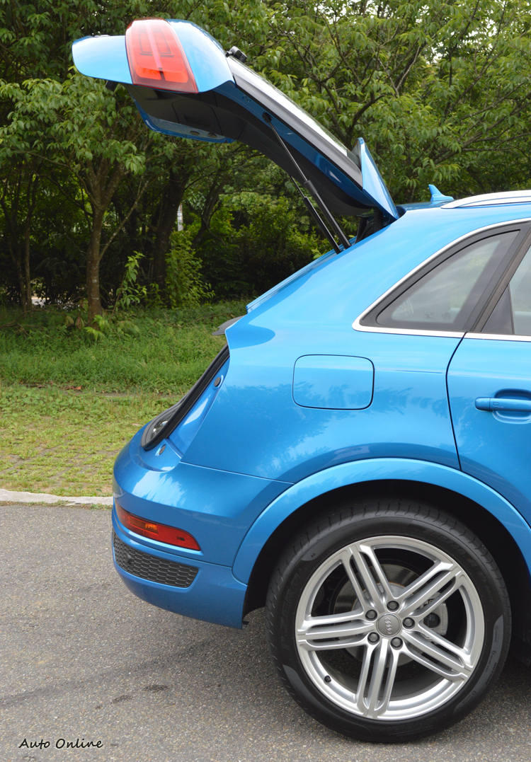 Q3標準狀態下就有460L的行李容積,後座打平後則擴充至1365L,行李開口特別傾斜,也讓車主更輕鬆取放車內物品。若以買家的角度來看,或許會希望既然不提供備胎,就該在行李廂底層設計隱藏置物格或多層隔板;此外,座椅前翻後,地板的段差並不小,這些多少都可能影響休旅機能方面的分數。