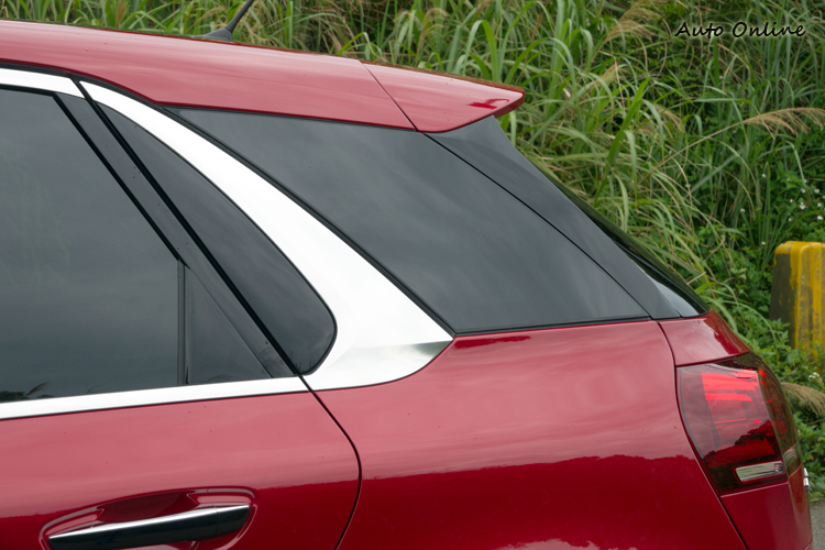 ▲除了車窗輪廓施以類金屬質感烤漆外,E柱也施以黑色烤漆處理。