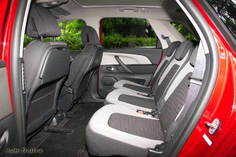 後排是三張獨立座椅設定,意味後座就算是坐進三名成人照樣可以坐得舒服不用跟旁邊擠來擠去。而且三張座椅可以調整椅背傾斜度以及前後滑移,對應乘客的身材與喜好可以有更大的彈性。