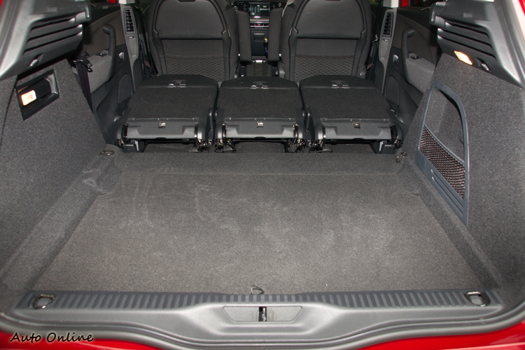 而在行李收納部分,行李廂的標準容量為537公升,將三張後座椅背向前翻倒後可以得到約640公升的行李空間;副手座椅背也可以向前放平,這樣就可以放進最多長達2.5m的長形物品。除了帳面數據漂亮外,更重要的包括之前提過尾門佔滿了車尾寬度,所以尾箱開口非常地大,內部空間形狀也方正完整,沒有什麼隆起的避震塔佔掉空間,所以一些同級對手放不太進去(可能空間夠,卻被空間形狀的突出部分擋到)的行李可以更輕鬆地放入這部車內。