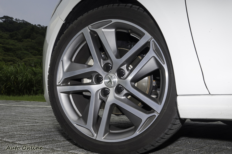 ▲頂規車型配18吋胎與五輻雙肋式樣鋁圈。
