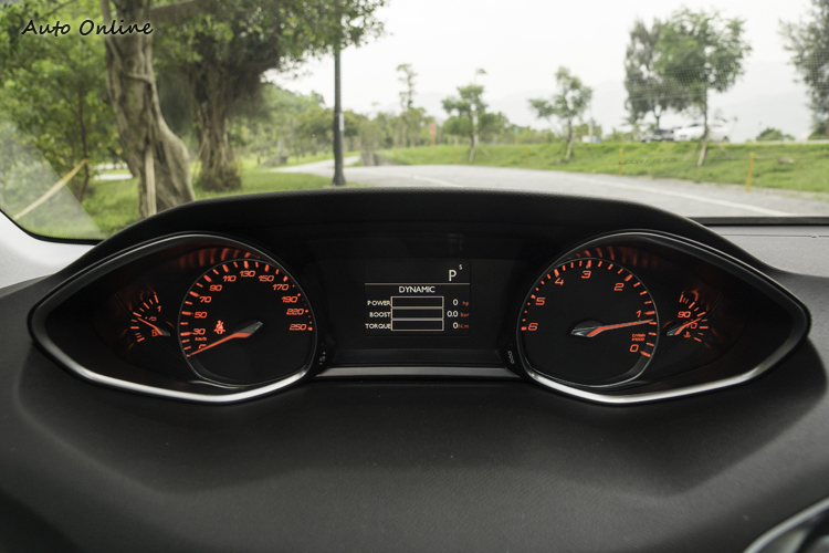 ▲頂規車型標配的Dynamic Pack啟動下儀錶會轉為紅光並提供顯示增壓值、馬力輸出等資訊。