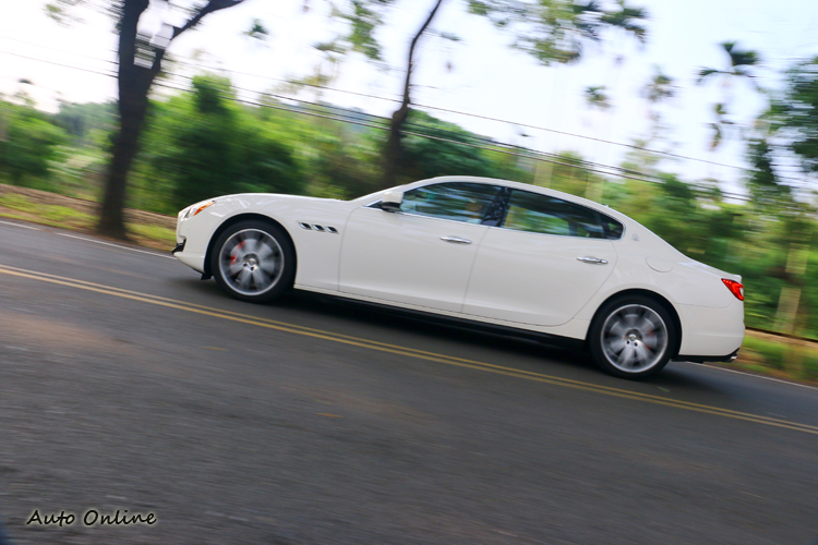 換手點後,我們要試的是Quattroporte S Q4,Quattroporte車身尺寸更大,已來到BMW 7-Series L、M-Benz S-Class L的等級,必須重新適應前後左右車身距離感。