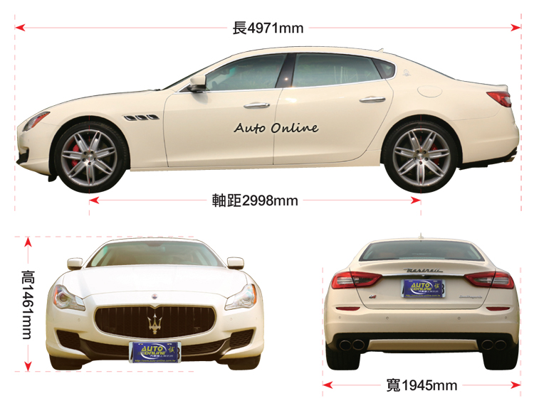▲Quattroporte車身尺寸長、寬、高與同級對手BMW 7-Series L、M-Benz S-Class L車格相仿。