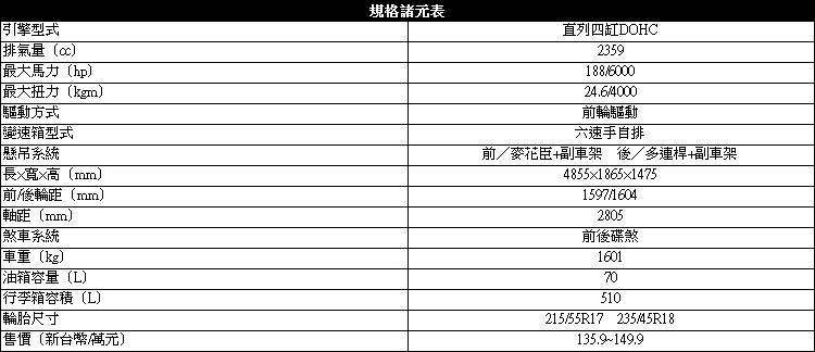 結語![]() 七代Sonata最大的革新進化之處就是在底盤懸吊,包括車身剛性的強化與對其前麥花臣、後複合式多連桿懸吊的懸吊幾何設定調整以及對懸吊支點軸承強化、後懸吊透過副車架來來與車身連結等。實際駕駛時的感受就是車身更紮實,在高速公路上奔馳時車身動態相當穩定,也讓駕駛在過高速彎與切換車道時更有信心掌握車輛動態。車身對於左右側傾與車頭下潛、上揚的抑制也很到位,已經有歐系房車的味道。