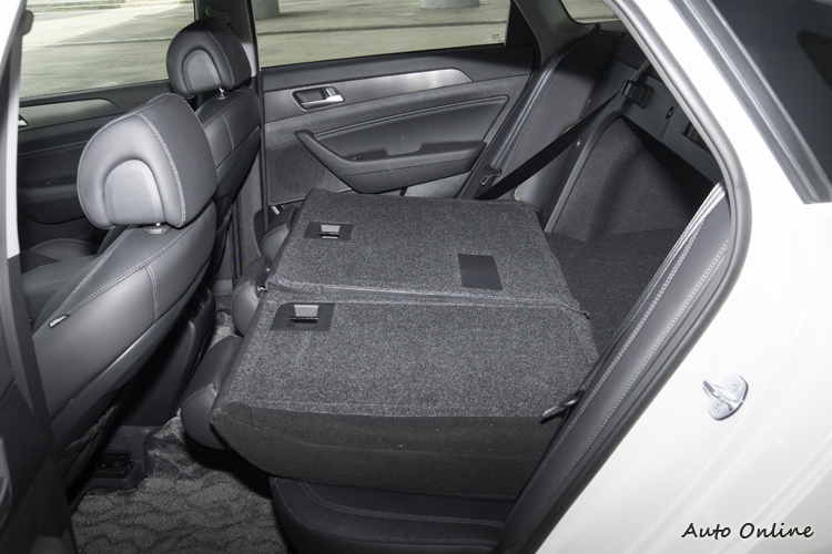 寬裕乘坐空間![]() ▲座椅椅面寬大輻貼,椅墊支撐感適合長途乘坐。身為車長過4米8、軸距過2米8的中大型房車,Sonata在空間上也算有板有眼。後座腿部空間以170公分左右中等身材的人來說腿部與前座間大約有四個拳頭左右的距離,稍微翹個腳都還可以;後座頭部空間則因為車頂線條的壓低表現平平,大概差一二指的距離頭就要貼頂了,前排也只是略好一些。 ![]() ▲後座腿部空間寬裕,頭部空間則因壓低的車頂線條而犧牲了一點。![]() ▲後座有空調出風口與12V電源插槽。![]() ▲行李廂收納容量為510公升。![]() ▲後座椅背可放倒,與行李廂間有局部連通。