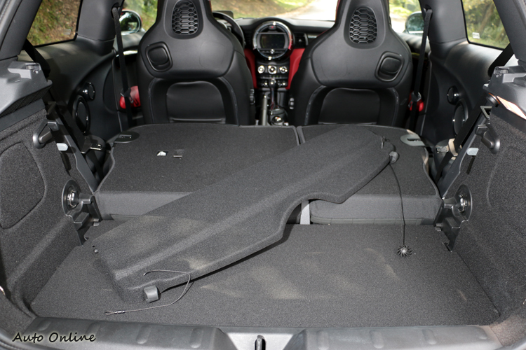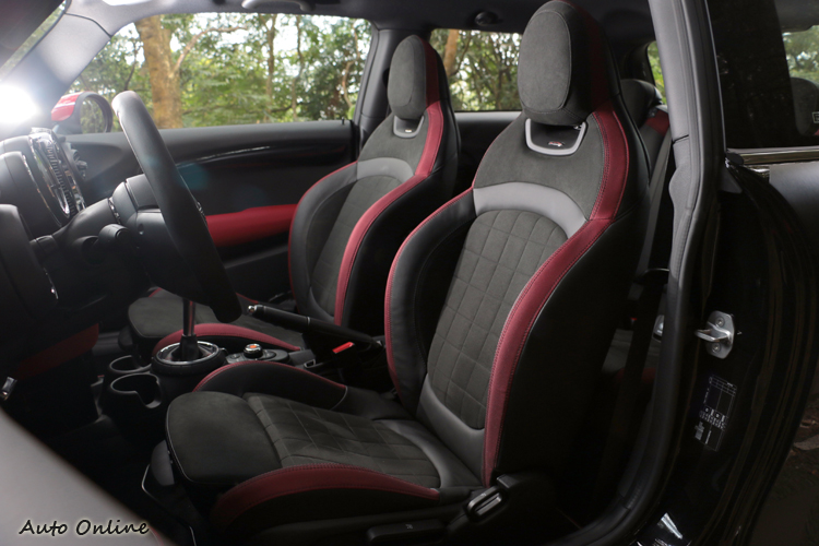 ![]() ▲跑車化座椅表面採麂皮材質,大幅度增加人與座椅摩擦力。![]() ▲漂亮的JCW Pro方格旗絨質腳踏墊,增加車內整體一致性。![]() ▲可6/4分離的後座椅提高小車的實用性。