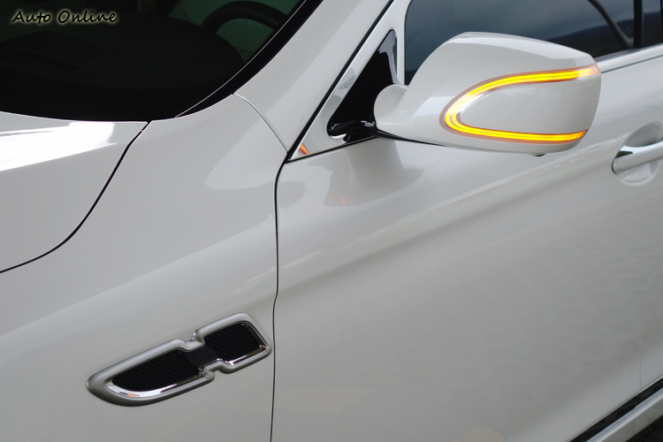▲類Maserati的鰭孔裝飾,以及大U形LED後視鏡轉向燈,絕對是路人焦點。