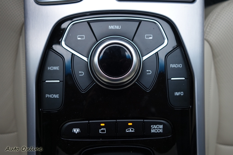 Quoris的排檔桿曾經一度引起話題,因為造型與BMW的線傳控制排檔桿實在太像了!就連操作也如出一轍。三種駕駛模式之外,還額外提供雪地行駛模式,不過我們發現即使在Sport模式下,油門反應似乎也沒有戲劇化的改變,有點讓人納悶。