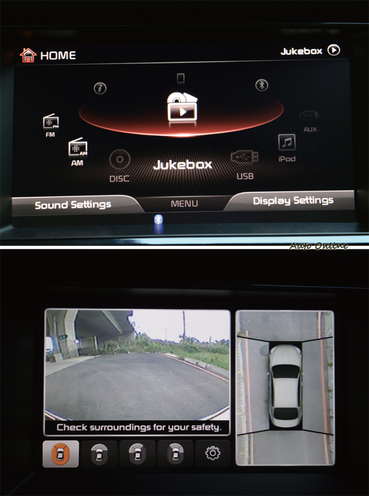 Quoris配備一套先進的HUD全彩抬頭顯示器,能將車速、主動巡航系統等資訊都投射在擋風玻璃上,如果有配備衛星導航,HUD還會顯示導航風向、轉彎提醒,駕駛完全不用轉頭盯著中央螢幕看。其餘還有900W功率輸出的頂級Lexicon音響系統和17支揚聲器、雙開式全景天窗等配備。至於中控台上的12.3吋整合娛樂系統,主要是提供30GB硬碟音響、電話、環車攝影畫面,可惜獨缺觸控功能,我們也希望正式上市後能把衛星導航系統也納入。
