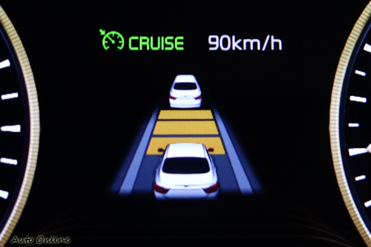 ▲ASCC車距設定在最遠的第四段,車速90kph時剛好就是50公尺,很適合雪隧使用。