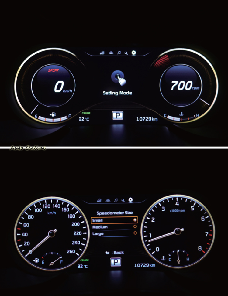 ▲運動模式下,儀錶會立刻由指針變成數位顯示,就連水溫和油量也跟著變。