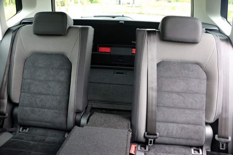 ▲中央座椅翻摺後,就多了行李廂通道的功能。