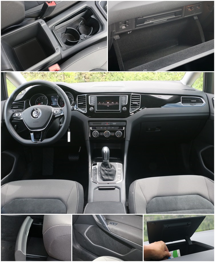 座艙內的中央螢幕位置比Golf還高,並且將冷氣出風口移至螢幕兩側。這套6.5吋整合資訊系統具有滑移感應觸控設計,和Passat一樣,標配就含多媒體鏡射(App Connect)功能,而且已經可以同時支援Android和iOs雙系統的手機。至於支援MP3播放當然是最基本的了,而除了單片CD之外,還有SD/AUX-IN/USB/藍芽免持、音樂串流播放,並且還能播放照片。