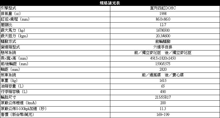 儀錶組雖然仍是採雙大圓儀錶設計,不過中間的MID旅程資訊顯示幕面積加大至4.2吋,透過方向盤上的按鍵操作就可以判讀包含油耗、行車里程、胎壓、影音資訊及LDA車道偏離警示等行車資訊。排檔桿旁的資訊整合操控介面的左右二側新增了「輸入」按鍵,讓多功能資訊整合系統的功能選取操作更為便捷,而且不管是駕駛或副手座都可以操作。