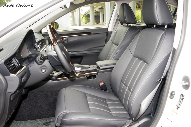 除了飾板之外,伸手向四處摸去也會發現到新ES加入不少的縫線處理,比如中央鞍座二側還有座椅椅面的三道,排檔桿改為皮革包覆方式,縫線自然也少不了。而在駕駛介面上,新的三輻式樣方向盤在皮革、鍍鉻與功能按鍵都有增加。
