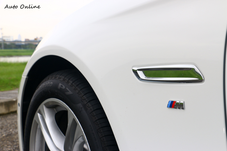 前後保桿與側裙換上M款空力套件,讓原本穩重的5-Series多了幾分年輕的氣息,加上18吋M款雙輻式鋁圈,已不像豪華中大型房車該有的氛圍。