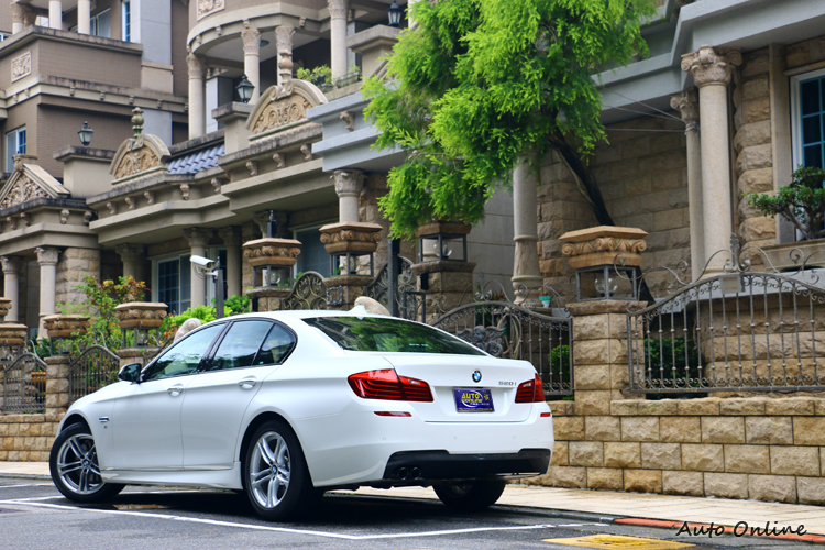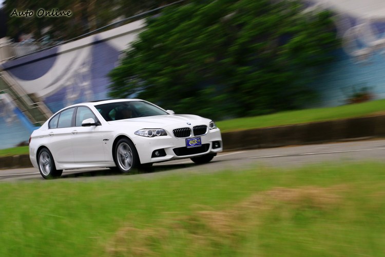 重達1600kg的車身重量,靜止加速到100km/h花費7.9秒,極速可以達到233km/h,有著轎跑車的實力。520i M Sport Edition換上M款前245/45R18、後275/40R18鋁圈、輪胎規格,偏向舒適的懸吊阻尼設定下,過彎在同級對手中有過人演出,就算軸距接近三米,快速切灣還是感覺輕鬆,沒有太大壓力。台北街頭駕駛,懸吊阻尼、彈簧硬度維持中大型房車該有的舒適性,只是換上扁平比較低的輪胎,不平的道路會有些彈跳,這是無可避免,要車帥氣只能忍受。