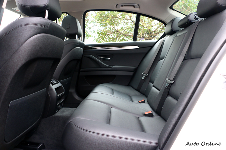 BMW 5-Series屬於中大型豪華房車,接近三米的軸距與五米的車身長度,造就出寬敞的後座空間表現,不管是膝部還是頭部,都不會帶來壓迫感,後座也有冷氣出風口,就算520i是最入門5-Series,寬敞、舒適後座乘坐質感不因此打折。