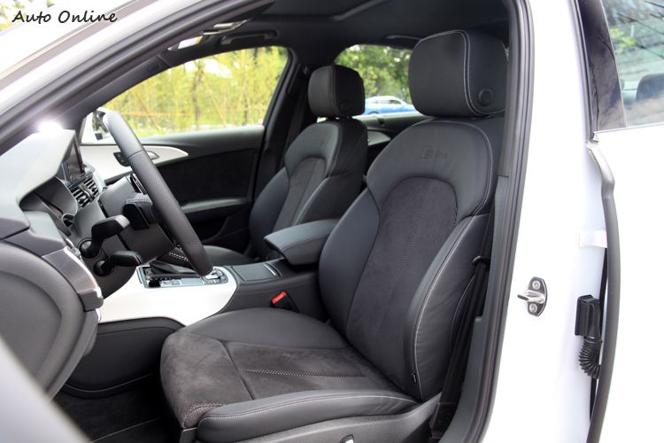 ▲真皮與麂皮搭配的雙前座椅,有很好的包覆性與身體防滑機能。