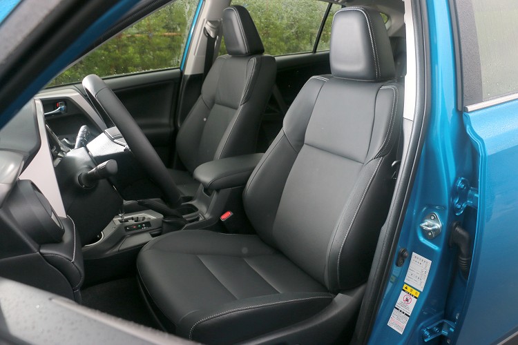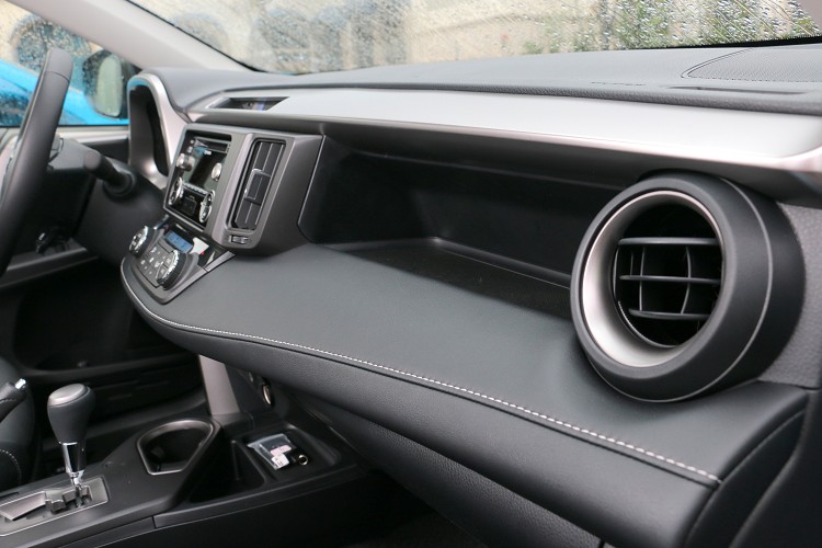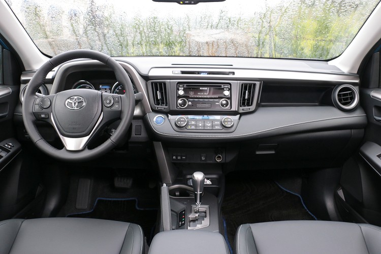 改款RAV4車內大致與改款前相同,只是質感大幅度提升。時尚簡約的駕駛座艙,藉著中控台延伸的水平設計,創造立體寬闊的視覺感受。本著日本工藝美學的細膩設計,在車內霧黑飾板的點綴下,整體質感優雅大方,更塑造強烈的科技感與動感氣息。內裝除了原有的沉穩內斂黑色,原廠提供全新米色、陶褐色,以及科技感的灰色共消費者選擇(特殊色受定生產)。較可惜除了HYBRID旗艦4WD車型配置觸控式影音主機附衛星導航系統及HD高畫質數位電視,其餘都只有基本的2DIN音響(有USB、AUX IN、藍芽功能),不過我相信消費者在買車同時絕對有升級的空間。