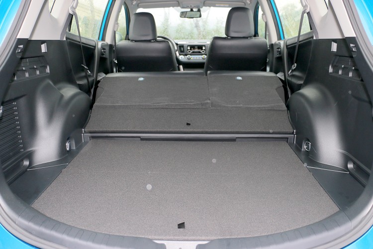 空間表現上,RAV4 HYBRID電池放置在後座座墊下,不影響乘坐表現及行李廂空間,與一般動力的中型SUV相差不大,後座椅背有角度調整但無法前後滑移,椅背能6/4分離傾倒來換取後行李廂物空間,行李廂空間還算平整,只有接近後座椅背處有小小的隆起的電池機構影響,原廠在那設置貼心置物盒畫符朽為神奇。唯一小小缺點是後座沒有冷氣出風口,與改款前症狀相同,原廠沒有因為改款後將它導正,這影響到夏天時後座的乘坐品質。