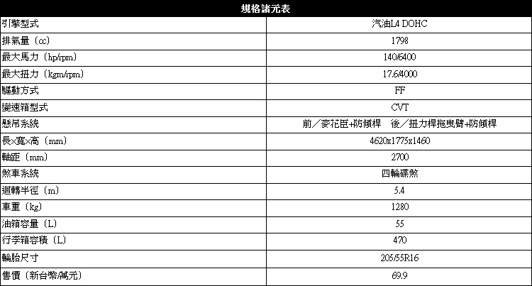 ▲搭載1.8升引擎,輸出最大馬力140ps / 6400rpm,最大扭力17.6kg-m / 4000rpm。