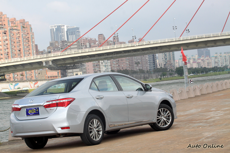 車側同樣看的到強烈的立體折線與車門手把一氣呵成,加上與車體曲線銜接車側鍍鉻飾條,至於車尾同樣遵照寬闊大器與尊榮為前提的設計哲學,附LED導光條設計的尾燈組搭配保桿下緣外張倒梯形設計,呼應了車頭設計,並流露出新Altis外型更具年輕動感的歐風外觀。