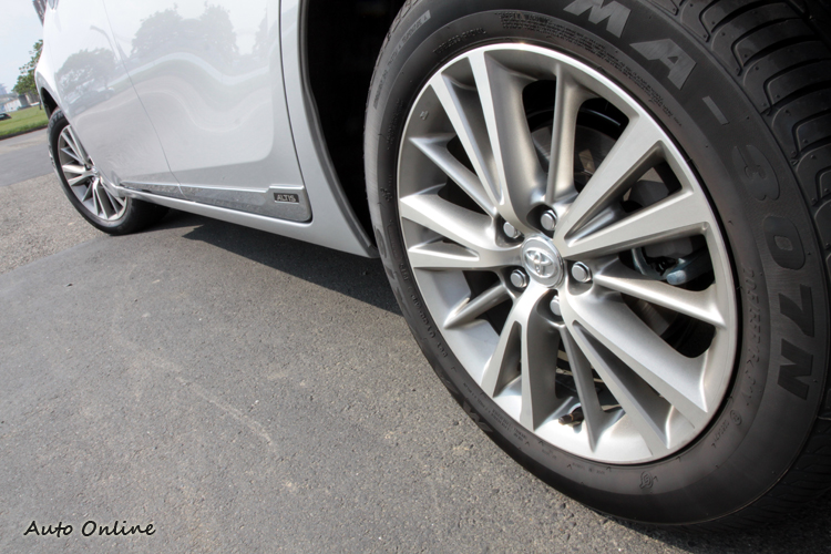 ▲16吋規格鋁圈,造型採放射狀有視覺放大效果。