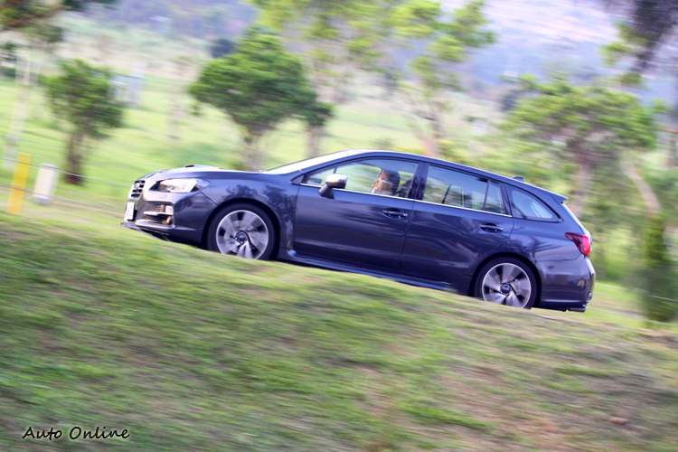 手緊握方向盤,將SI-Drive動力控制系統切到Sport(Levorg只有S、I兩種模式),油門盡可能保持在一半深度來得到較大動力,SAWD對稱是全時四輪驅動系統得到最佳輪胎抓地力,有WRX相同的ATV主動扭力引導系統,利用改變內、外輪動力輔助車頭指向性,減少轉向不足或者轉向過度產生(後者不太可能發生),山路上Levorg轉向精準,設計團隊在懸吊調校琢磨很深,放軟彈簧硬度加重桶身阻尼,藉由達到穩定的車身動態,原廠給的資料說Levorg操控靈敏度與BRZ相同,老實說兩者還是有些差距,光是車身重心就不一樣,只能說Levorg有著四輪傳動加持,比起BRZ易於駕馭。