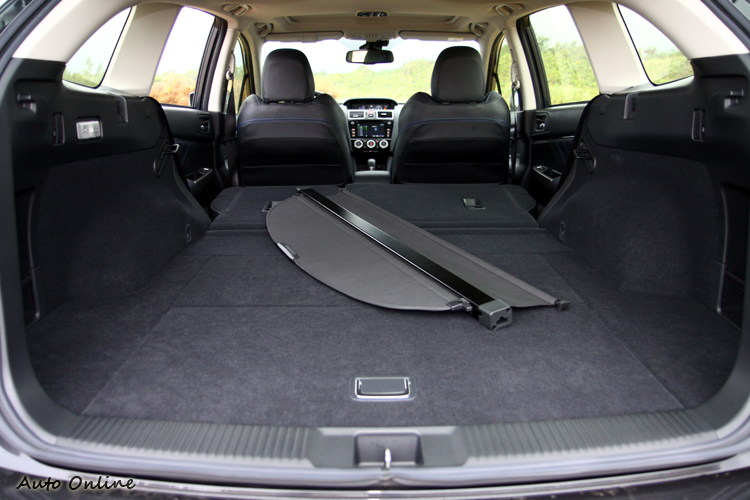 Subaru Levorg內裝主打寬敞舒適及實用兼具,後座膝部空間比起前一代Legacy Wagon多了25mm,頭部一樣有著優異水準,後座椅背有6/4分離功能,一鍵快速傾倒後從原522L一舉放大至1446L置物容積,讓全家出門採買或是戶外露營都無後顧之憂。