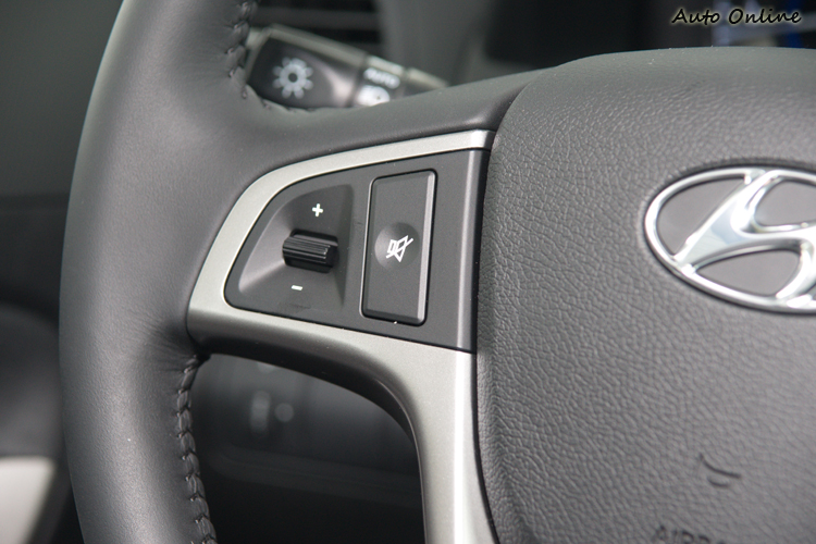 ▲方向盤上的快撥鍵可控制音響選曲/頻道與調整音量。