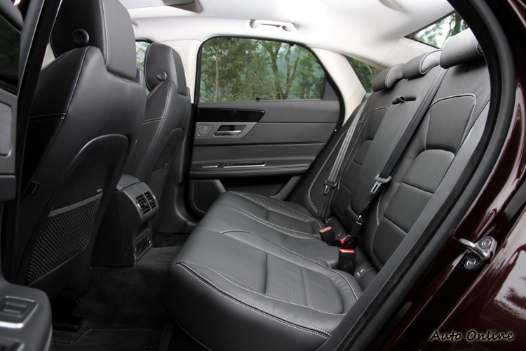 原廠安排的試駕路線包含高速公路與蜿蜒山路,有著之前XE在賽道上的印象,對於XF也有著相同期望。XF 25t搭載的2.0升渦輪增壓引擎與八速手自排變速箱,低速加速反應直接,全油門踩下聽覺能享受到原廠刻意調校的排氣聲浪,微微的貼背感是上一代XF不曾有的感覺,雖然同樣的引擎配置,減輕超過50kg車身重量得到不一樣的結果,難怪賽車運動中輕就能決定一切。車速來到中、高速時,加速力道明顯下滑但絲毫不懈怠,頓時看看時速表已超過限速很多不得不立刻減速,XF在後段的加速表現驚人,車身動態也沒有因為鋁合金材質輕而帶來漂浮感,如同四門跑車般又快又穩。