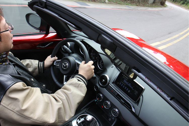 另外比較可惜的是,座椅的包覆性只算得上普通,在速度較快的情況下過彎時就會暴露出支撐性不足的缺點。此外,MX-5方向盤上的控制鍵安排也稍嫌擁擠,特別是左手操作儀錶資訊切換功能時,很容易誤觸音量鍵。而它的方向盤握徑也有過細的問題,而且表面沒有特別防滑處理,不知是否又是為了輕量設計,雖然還不至於影響操駕,但相信買家會期待它的手感可以做得更好。